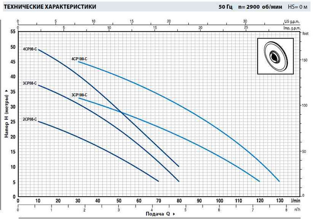 ЕКСПЛУАТАЦІЙНІ ХАРАКТЕРИСТИКИ насосов Pedrollo 2-4CP