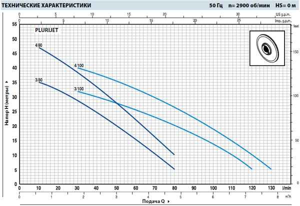 ЕКСПЛУАТАЦІЙНІ ХАРАКТЕРИСТИКИ насосов Pedrollo PLURIJET 60-80-100