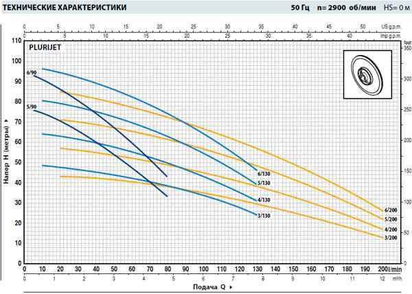 ЕКСПЛУАТАЦІЙНІ ХАРАКТЕРИСТИКИ насосов Pedrollo PLURIJET 90-130-200