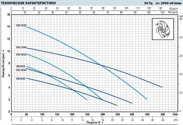 ХАРАКТЕРИСТИКИ насосов Pedrollo VXC 35 45