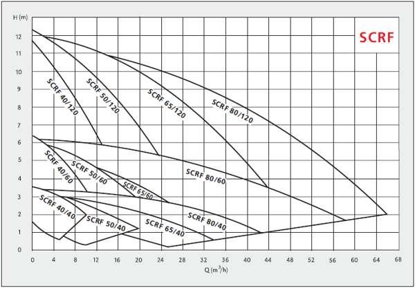 Графік характеристик напор-продуктивність насосів Speroni SCRF