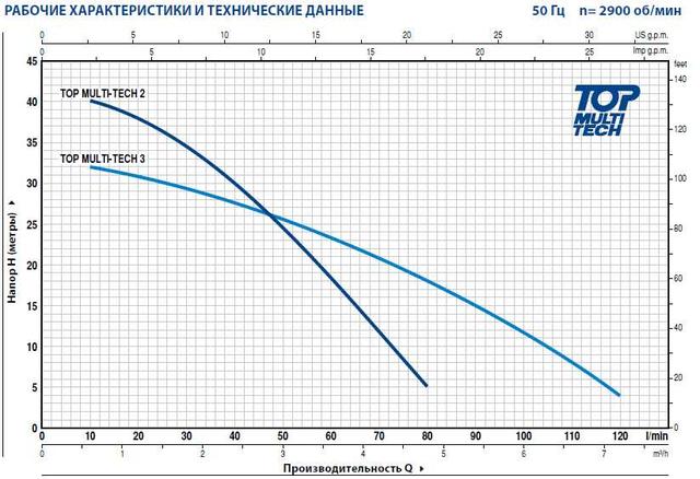 ЕКСПЛУАТАЦІЙНІ ХАРАКТЕРИСТИКИ насосов Pedrollo TOP-MULTI TECH